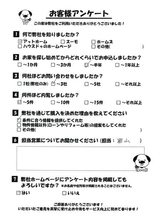 この度は、数ある不動産会社の中から弊社を通じてお家をご購入いただき、 誠にありがとうございます。 また、壁紙の貼替もあわせてご依頼いただきましてありがとうございます。 仕上がりも気に入っていただけたようで職人さんともども嬉しく思います。 お引渡しはおわりましたが、引き続きお住いのことでなにかお困りごとや お悩みが出た際にはぜひお気軽にお申しつけくださいませ。